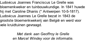 Terug naar overzicht Antwerpse begraafplaatsen Berchem Antwerpen 20 - 1 - 1817 / Berchem 15 - 5 - 1852 Ludovicus Joannes Franciscus Le Grelle - Dhanis Het grafmonument voor Ludovicus Joannes Franciscus Le Grelle-Dhanis bevindt zich op perk 20 - B. Hier ligt ook Ludovicus Le Grelle (Antwerpen 29-1-1849 / 18-3-1908).