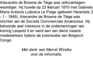 Sint-Fredegandus Deurne Terug naar geschiedenis van deze begraafplaats Berchem 26 - 12 - 1841 / 5 - 6 – 1910 Alexandre de Browne de Tiège Het grafmonument voor de familie  de Browne de Tiège bevindt zich  op perk P - MK - 40.