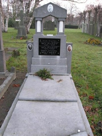 Moretus Wilrijk Petrus Wolfaert Het grafmonument van Petrus Wolfaert bevindt zich op perk L.  «Nieuwe ligging» perk A, rij 05, graf 15.