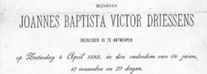 Schoonselhof Rijsel (F) 6 - 5 - 1820 / Antwerpen 4 - 4 - 1885 Victor Driessens