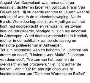 Schoonselhof O-L-V-Lombeek 31 - 12 - 1885 / Antwerpen 4 - 7 - 1945 August Van Cauwelaert